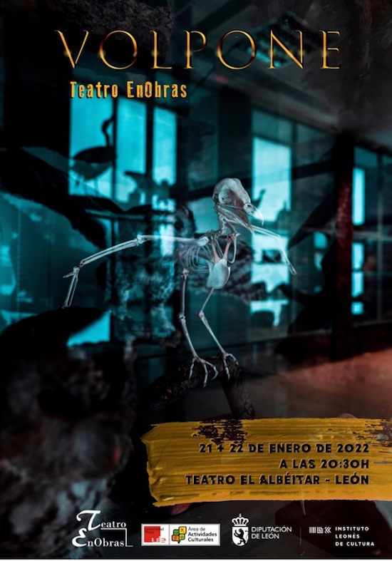 Después del éxito de las dos funciones ofrecidas el pasado mes de enero, la compañía leonesa Teatro EnObras vuelve al escenario del Teatro El Albéitar con ‘Volpone’, de Ben Jonson, este domingo 27 de febrero de 2022, a las 19:30 horas.