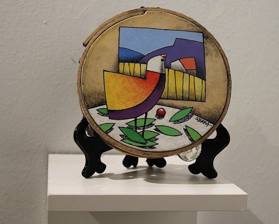Por ISAAC MACHO.— El pintor leonés Manuel Sierra cierra el calendario creativo del año con una propuesta singular, ya que ha expresado su arte sobre la piel de una quincena de panderetas que ha titulado «No es un villancico». La muestra podrá verse en el Restaurante Puerto Chico (C/Nicasio Perez 1) de Valladolid, hasta el 17 de diciembre.