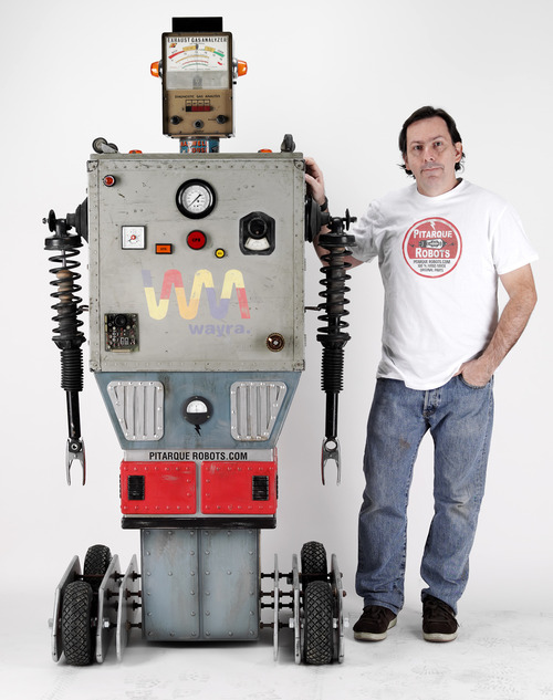 Por CAMINO SAYAGO.— El universo tecnológico de las películas de ciencia ficción de los años 50 y 60 es la principal fuente de inspiración de las piezas que recrea Javier Arcos Pitarque en la sala leonesa Espacio E. Robots muy personales realizados con material reciclado. Hemos hablado con él sobre esta aficción que comenzó con el coleccionismo.