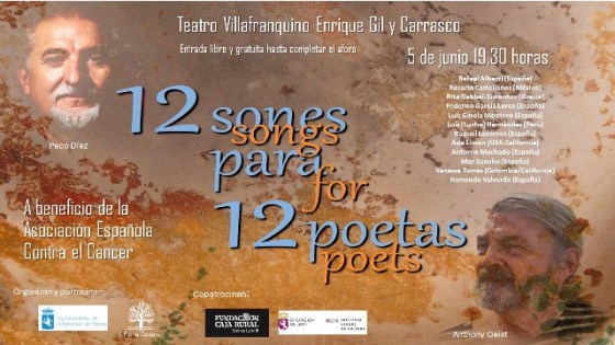 El Teatro villafranquino, Enrique Gil y Carrasco acoge el próximo miércoles 5 de junio a las 19:30 horas, “12 sones para 12 poetas”, un recital poético musical con el filólogo, músico e investigador Paco Díez y el profesor Anthony Geist, en beneficio de la Asociación Española Contra el Cáncer. La entrada es libre y gratuita, hasta completar el aforo.