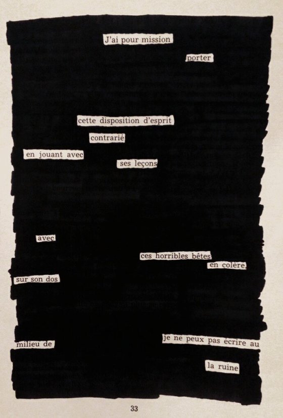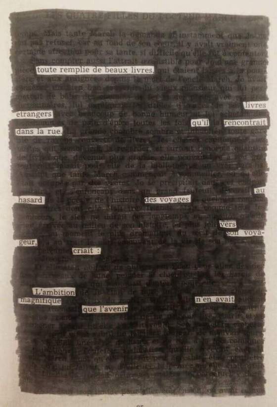 Por SILVIA ABAD MONTOLIÚ.— Continuamos con una nueva sección poética en TAM TAM PRESS de la mano de esta joven poeta leonesa. Bajo el título de “Poesía opaca” (“blackout poetry” en inglés, “poèmes opaques” en francés…), la autora realiza un juego poético y visual de tachaduras sobre una página escrita, buscando un poema escondido a la vista. “Je joue, donc j’écris”…