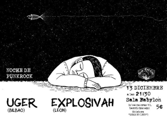 Punk-rock de alto voltaje este viernes 13 de diciembre en la sala Babylon, en las entrañas del Barrio Húmedo leonés (C/ Santa Cruz, 10). A las 21:30 horas arrancará el doble concierto, con los bilbaínos UGER y los leoneses Explosivah. Entradas a 5€.