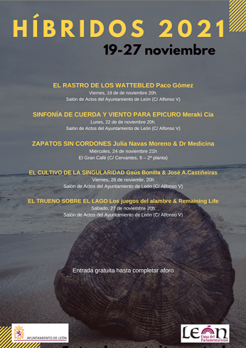 Música, poesía, danza y fotografía se dan la mano en esta nueva cita del programa multidisciplinar ‘Híbridos’. Son ya seis ediciones y el festival regresa del 19 al 27 de noviembre, con cinco propuestas en las cuales se retarán las fronteras del lenguaje y de las disciplinas creativas. Se celebrarán en el Salón de Actos del Ayuntamiento de León y en El Gran Café (C/ Cervantes, 9), con entrada gratuita hasta completar el aforo.