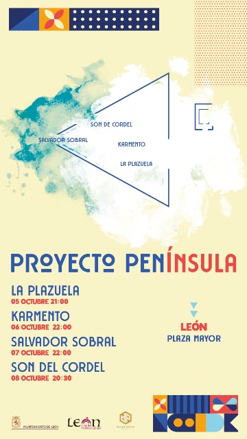 Los días 5, 6 y 7 de octubre la Plaza Mayor de la capital leonesa vuelve a ser escenario de la segunda edición del Proyecto Península, un ciclo de conciertos que fusiona sonidos de raíz con otros menos tradicionales. La Plazuela, Karmento, Salvador Sobral y el grupo leonés Son del Cordel completan el cartel de este festival que forma parte de la programación de las fiestas de San Froilán.