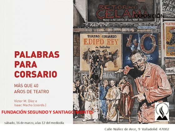 La Fundación Segundo y Santiago Montes acogerá el sábado 16 de marzo de 2024, a las 12 del mediodía, la presentación del libro «Palabras para Corsario» (Eolas&menoslobos), en el que 40 testigos periféricos vuelcan mirada y memoria sobre la compañía fundada a principios de los 80 por Fernando Urdiales y que actualmente dirige Jesús Peña.