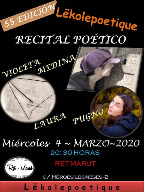 Velada poética en el bar leonés Ret Marut, con la autora chilena Violeta Medina y la italiana Laura Pugno, este miércoles 4 de marzo, a las 20:30 horas. Entrada libre.